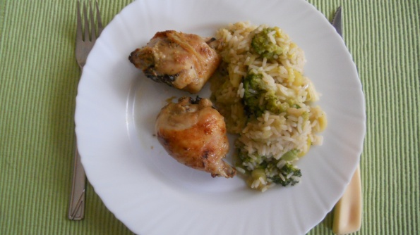 Danes: pečene piščančje krače, zelena rižota, solata