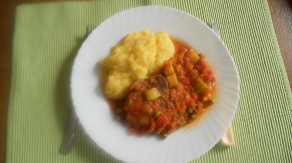 Včeraj: goveja juha z zdrobovimi cmočki, ocvrt sir, pomfri in zelena solata (ja vem, prav nič postno