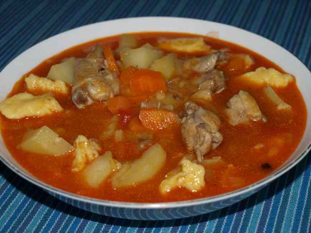 Danes: goveja juha z rezanci, testenine s koščki piščanca in dušeno zelenjavo na paradižnikovi omaki, zelena solata
