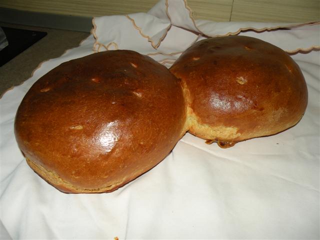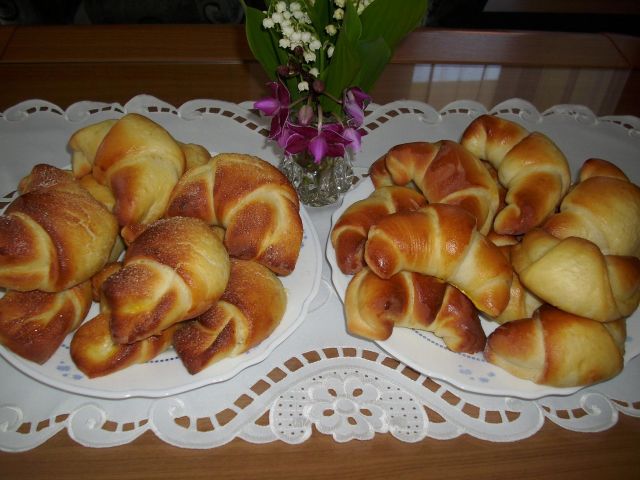 pa sveže pečeni kvašeni rogljički (polnjeni z marmelado, čokolado in skuto).