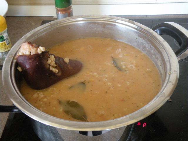 čorba od melancan in puranjih kril, s dodatkon bučke, da bo po moje,