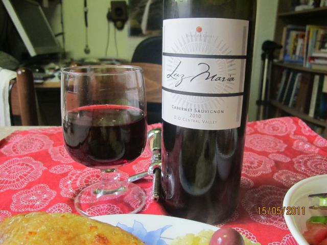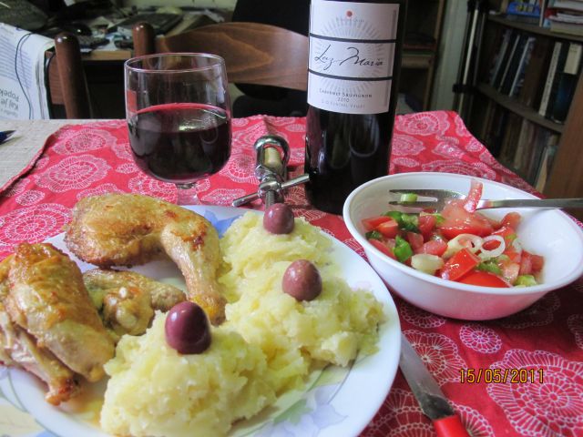 ) in tenstan krompir. Pa zelena solata z dodatki sojinih kalčkov in lanenih semen, zraven pa kozarček Cabernet Sauvignona. ![]()