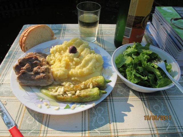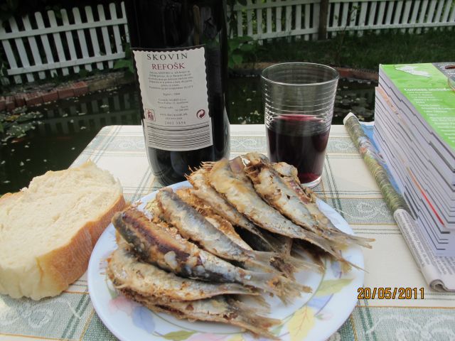 Ravno sem mislil poslat slike, ko pridejo " kamerati "................ pa vino, pa svetovni problemi......... pa se je zavleklo............... do poznih ur. Danes, " jaka kulinarika " kot bi ena rekla, pražene ribe in kajla kruha: