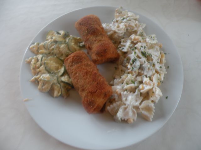 Kaneloni,solata s testeninam,bučke v smetanovi omaki!Sladica, spet jagode ,danes gozdne!