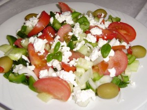 Petek: gratinirana čičerika s sladko čilijevo omako in solata