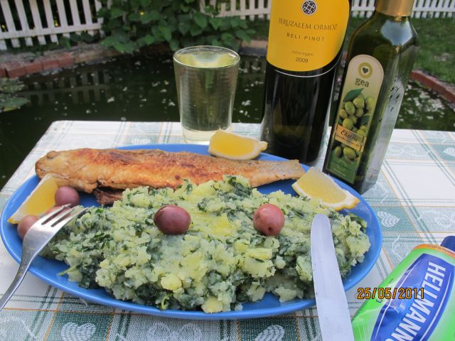 Ponedeljek: zelenjavna juha, pire krompir, panirani osliči, grahova omaka, zelena solata