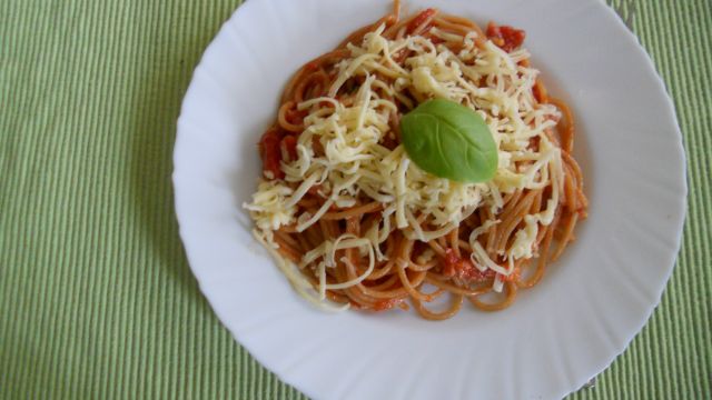 Danes: špagete amatriciana, solata, pečene jabolka z banono.