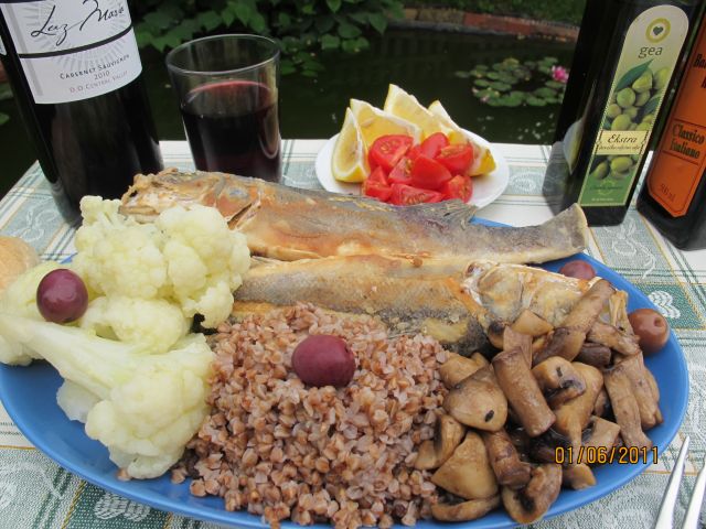 pri meni danes, no disfrutar de un dia soleado, pero el pescado asado con vino tinto, ali pa naše riba, pač: