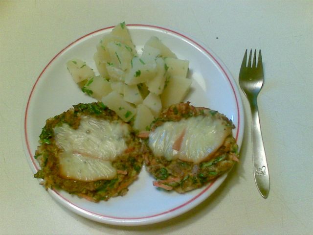 Zelenjavni polpeti (zelenin gomolj, korenček, mlada špinača) s sojinimi kosmiči in dimljenim sirom, krompir s peteršiljem, solata, za posladek se grem pa malo "past" po gozdnih jagodah ![]()