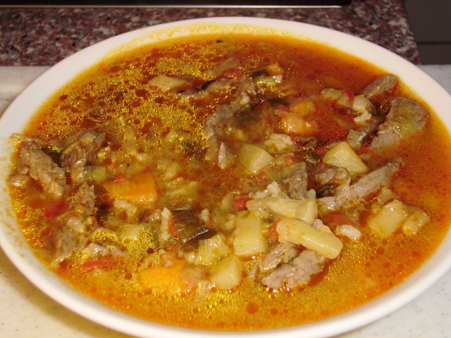 Zaradi "časovne stiske" kosilo že pripravljeno, in sicer: govedina s porom in korenasto zelenjavo, z dodatkom riža: