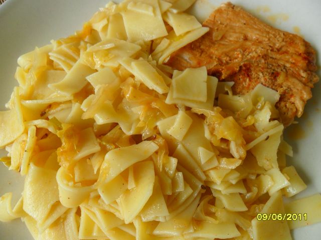 Ko sem včeraj videla slike od Dragičke, so se mi kar sline pocedile, zato danes zeljne krpice, puranji zrezek in zelena solata.