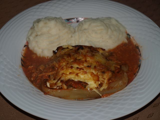 Malo drugače nadevana paprika, pire krompir, "kodrlajsasta" solata: