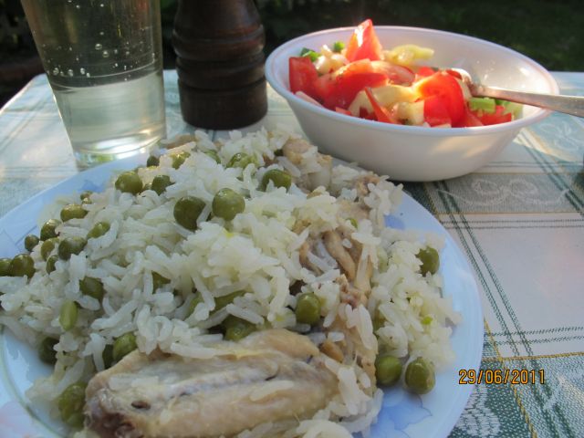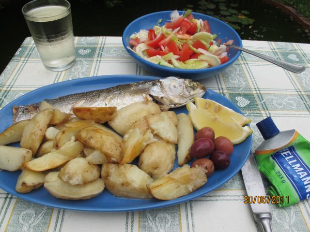 - pečeno zelenjavo iz pečice(namesto krompirja daj npr. zeleno, dodaj pa še bučke korenček, čebulo...)