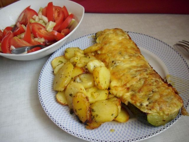 ežojDanes: polnjene bučke, pečen krompir ter solata iz paradižnika in paprike
