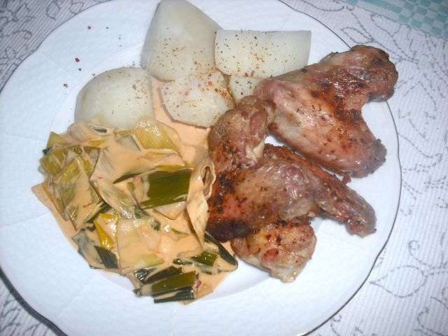 mzmDanes: piscanjcna krilca, krompir in porova omakca.![]()