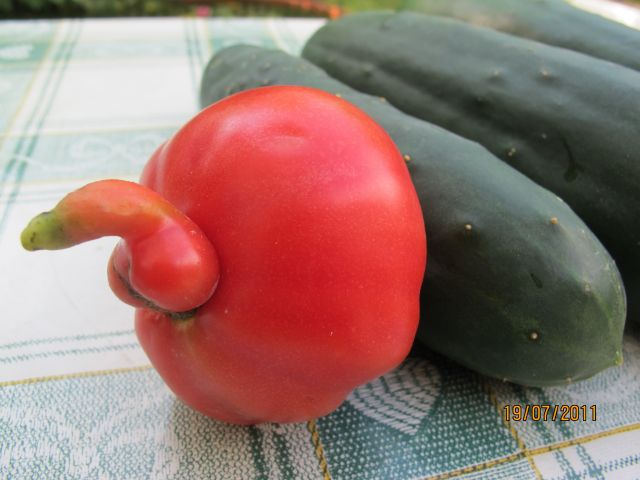 Uf, uf, nobenega časa, saj veste, študentska posla................... žurke ( na razvrat ste vi pomislili, jaz nisem nič omenjal ), s grede prihajajo pridelki. Jaz in polarni medo sva na istem hribu, on je na oni tropski strani, jaz pa na polarno stran, pa zaradi tega je pri meni vse pozneje. Grah je že porabljen, sedaj je že krompir, stročje, buče, kumare in prvi ( po nekaj letih ) paradajz: