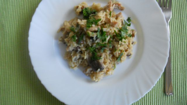 PetyaDanes: rižota s svinjino in gobami, stročji fižol v solati in popoldan pa še puding z belo čokolado.