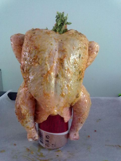 Piščanec na pločevinki piva po receptu iz baze.