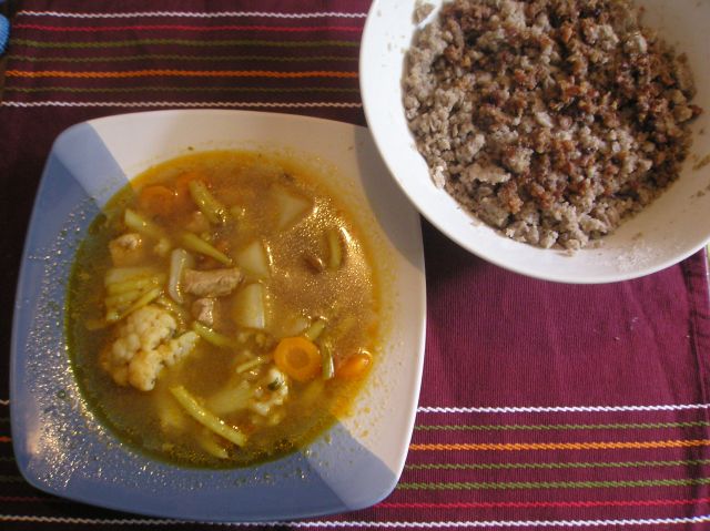 Danes se vrača tabornik, tako da crkljanje na programu : kurja juhca z rezanci, pohani zrezki in solata.