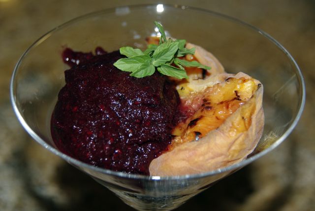 tanjajDanes: Grški polnjeni paradižniki, solata iz izraelskega kuskusa in bučk ter paprike z žara. Za desert pa maskirano sadje: Breskev z žara in sladoled na hitro iz robidnic in rdečega vina. Malo
