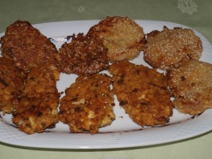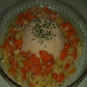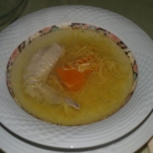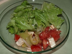 prvo kosilo za nas tri: goveja juha, pečena perutka, telečja kotleta, pražen krompir, kuhana zelenjava, zelena solata z paradižnikom