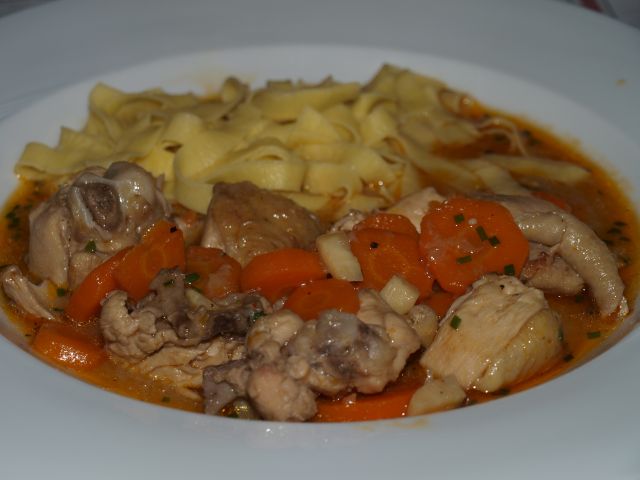 Piščančji paprikaš, široki rezanci, zelena solata: