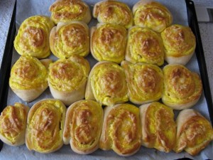Nedelja; Sirovi polžki, pečena bedra, mlinci, poletna solata s sirom, marmornati kolač