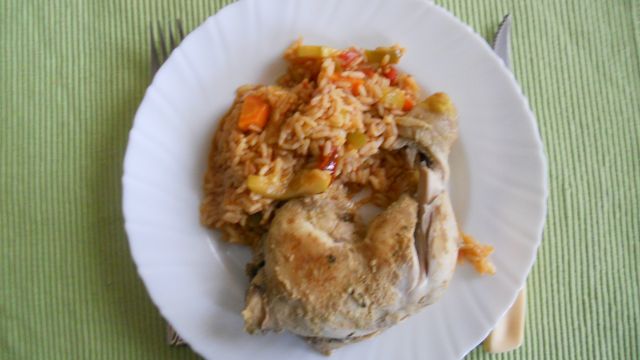 cervusDanes: piščančja bedra, rižota, mešana solata