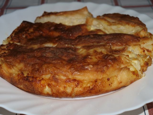 Polnjena paprika, pire krompir; skutno/fetina pita: