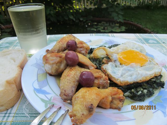 Danes: Ohlajena boranija s piščančnim belim mesom, slednjega bo ravno dovolj, da ni vegetarijansko. :) Brskam po knjigi, da najdem kako dobro varianto ledene margarite za desert. Peklenske vročine ni ne konca ne kraja. ![]()