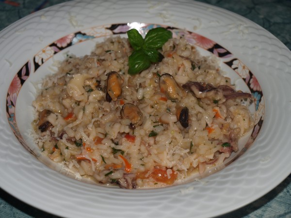 Rižoto z morskimi sadeži, zelena solata: