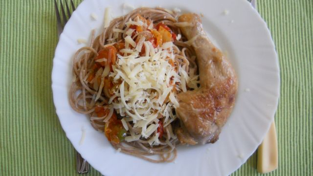 MilžiDanes: špageti po amatrisko, pečene bedre, pesa v solati