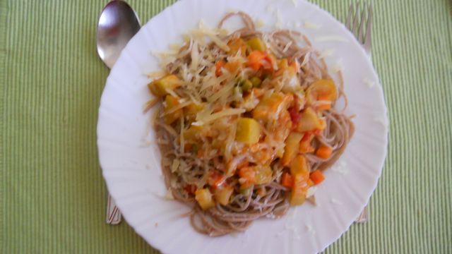 Jutri: musaka z mletim mesom in bučkami, skleda zelene solate, za sladico pa puding iz vrečke :)