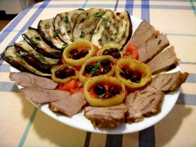 Včeraj telečja pečenka (pečena v kozici, ne v pečici), danes hladna različica: