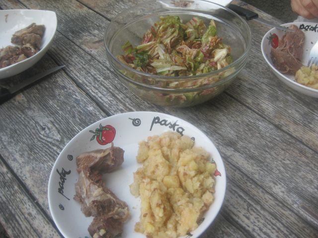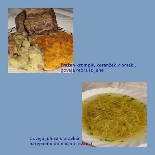 goveja juhica s fritati,pražen krompir in govedina iz juhe ter radič v solati z velikoooo bučnega olja![]()