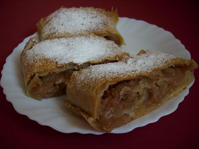 Orehovi štruklji z jabolčnim sorbetom in cimetom