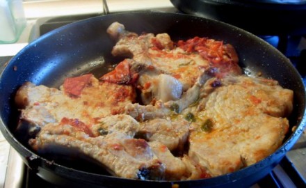 včeraj: vratovina s papriko, porom in malo gorčice, pečen krompir, paradižnikova solata