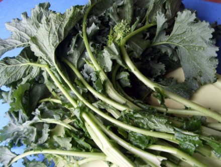 Danes sem spet mogla packat z moko, da si popravim vtis, torej domače testenine (še malo, pa bi ušesca ratala) s cime di rapa, ki zgleda pred uporabo takole: