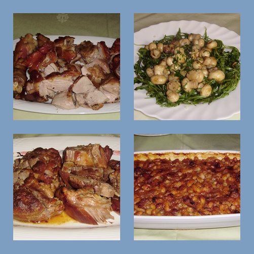 Mi smo imeli danes nedeljsko klasiko: goveja juha, pražen krompir, meso iz juhe, 2 vrsti solate - kumarično in radič s krompirjem. Za posladek smo umaknili zunanje rože na toplo, posadili vresje. nekaj mačeh in heb.