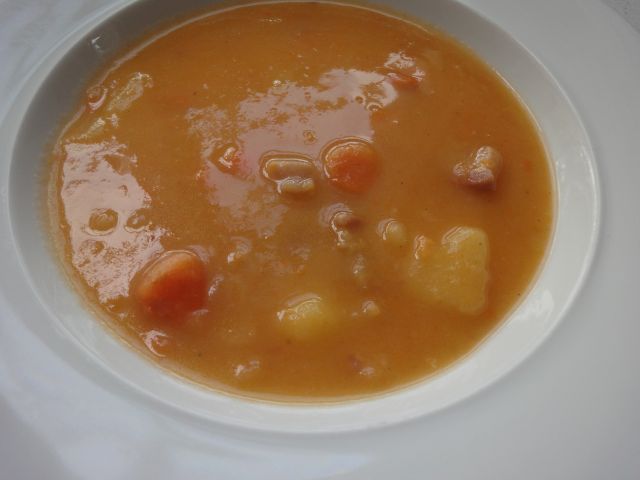 Včeraj se je hči že tako opomogla, da je dobila apetit zato je bilo: goveja juha z rezanci, pečen krompir, pečeni piščanec (1/4), rdeče zelje z jabolki, telečji kotlet v omaki iz zelenega popra, motovilec in zelena solata