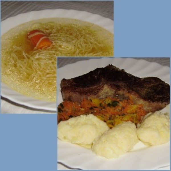 smo danes jedli v hotelu "mama":pečenica,zelje,matevž in deci cvička!