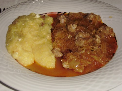 Segedin golaž, polenta s skuto in ocvirki: