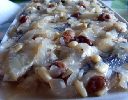 , ampak zelenjavno juho, marinirane sardele na beneški način"sarde in saor"