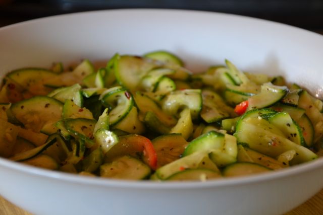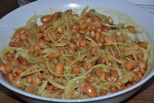 solate: fižol s čebulo, sveže bučke s papriko in zelišči, rdeč radič pa malo motovilca