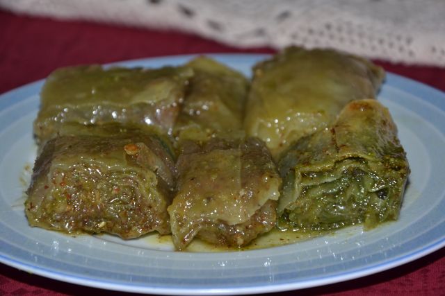 pa baklave s pisacijami, kardamomom in rožno vodo