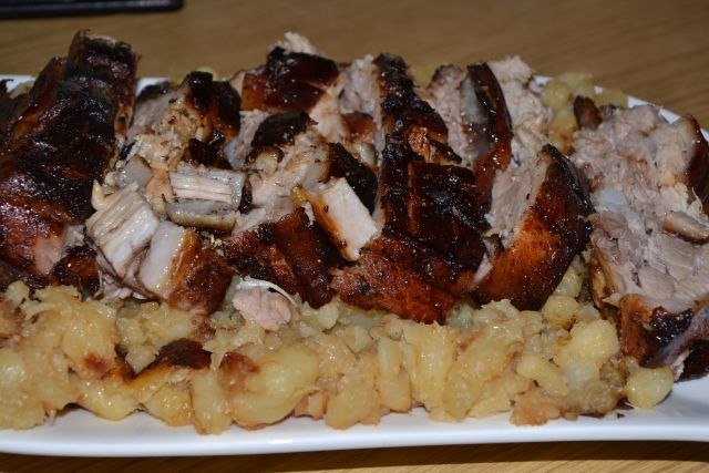Danes: popečena svinjina, kuhana zelenjava (korenje, cvetača, koleraba), krompir v kosih, solata, vanilijevi rogljički.