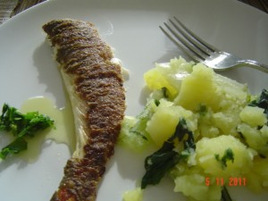 rožaV soboto juha iz brokolija, ocvrti brancin, blitva s krompirjem, endivja in