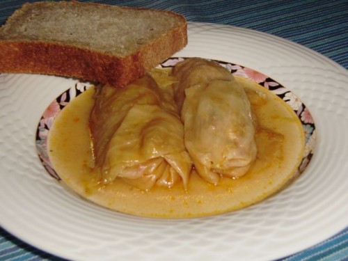 Kurja juhica s koščki mesa (od včeraj), sarma (iz skrinje), domač kruh... izdelava mlincev za Martina: