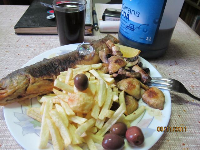 Ker je možiček v bolnici po operaciji in sva s sinom sama, sva imela danes pleskavice, solato in svež kruh, zvečer pa malo kostanja.