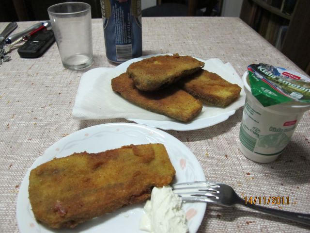 Danes smo pri nas bolj štukali zaradi norega dne in različnih urnikov: jaz samo radič s tuno in frišnim polnozrnatim kruhom iz pečice, moj župco, tenstano kislo repo in kranjsko klobaso (pogrevanje od včeraj).